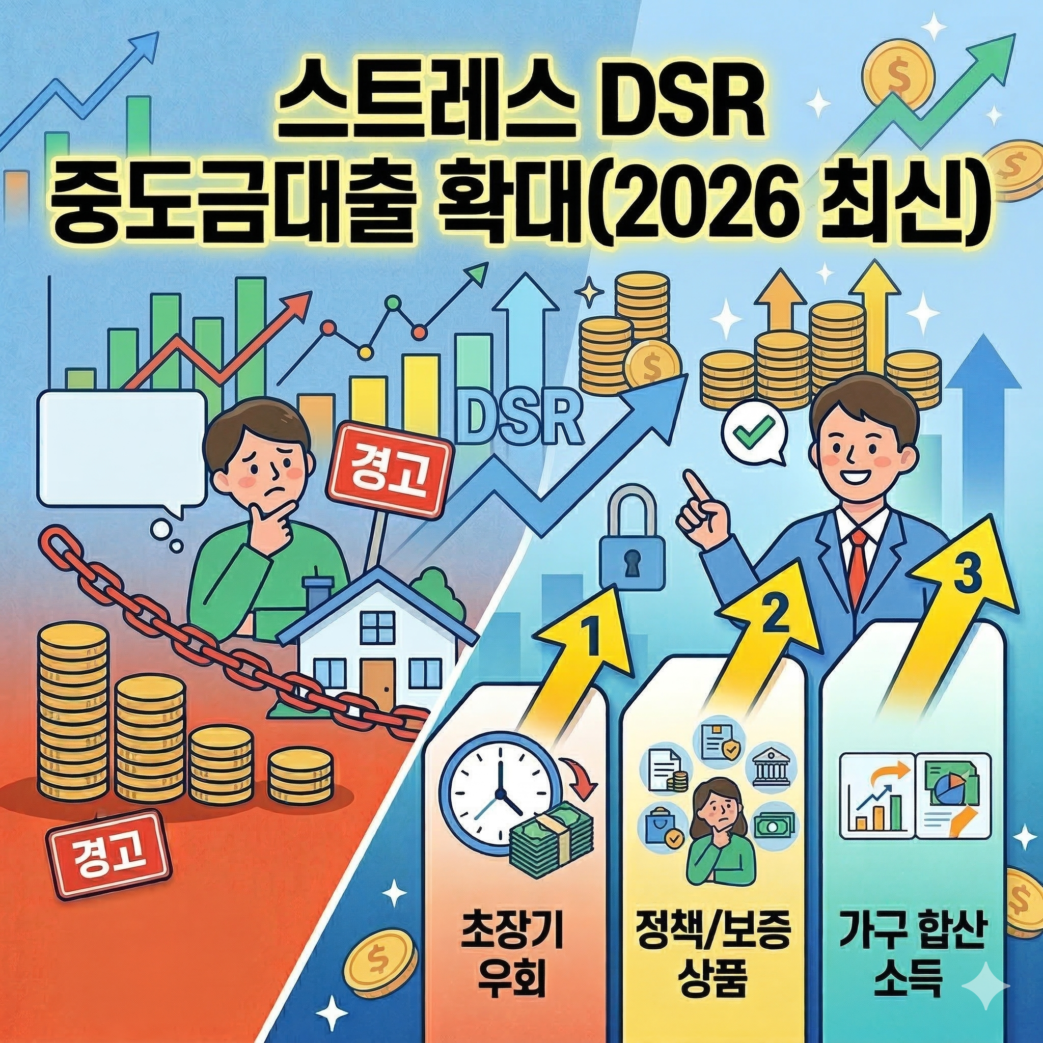 "청약 경쟁률 100대 1을 뚫고 당첨됐는데, 중도금 대출 한도가 깎여서 계약을 포기해야 할 판입니다." 최근 부동산 커뮤니티에서 가장 심심치 않게 찾아볼 수 있는 안타까운 사연입니다. 어렵게 내 집 마련의 첫 관문을 통과했지만, 정부의 가계부채 옥죄기 정책인 '스트레스 DSR'이 중도금 대출과 잔금 대출까지 전방위로 확대되면서 자금 계획에 치명적인 비상이 걸린 분들이 많습니다. 과거에는 "계약금 10%만 있으면 나머지는 대출로 어떻게든 된다"는 공식이 통했지만, 이제는 옛말이 되었습니다. 규제의 칼날을 정확히 이해하지 못하면, 평생 모은 계약금을 위약금으로 날리고 청약 통장마저 날아가는 최악의 상황을 맞이할 수 있습니다. 하지만 너무 좌절하지 마십시오. 규제가 복잡해질수록 이를 합법적으로 우회하고 내 ..