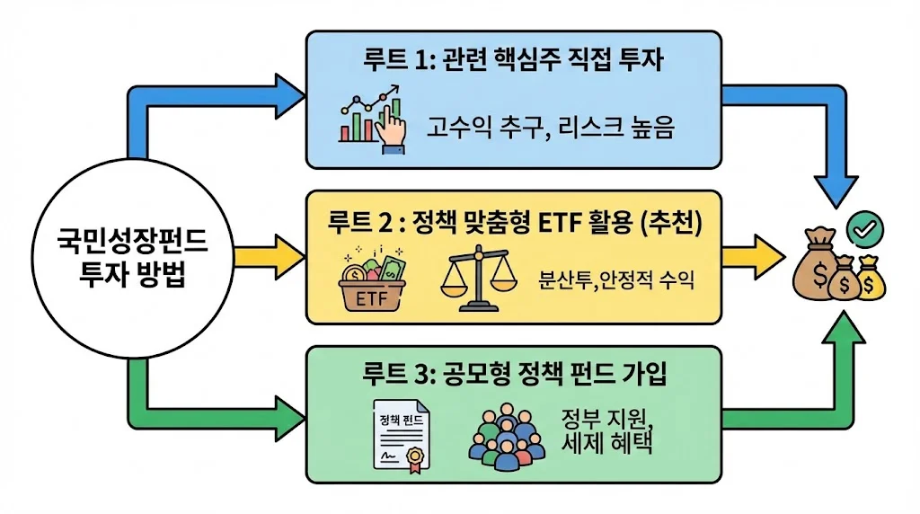 그렇다면 우리는 이 거대한 자금의 흐름에 어떻게 올라타야 할까요? 구체적인 투자 방법을 제시합니다.