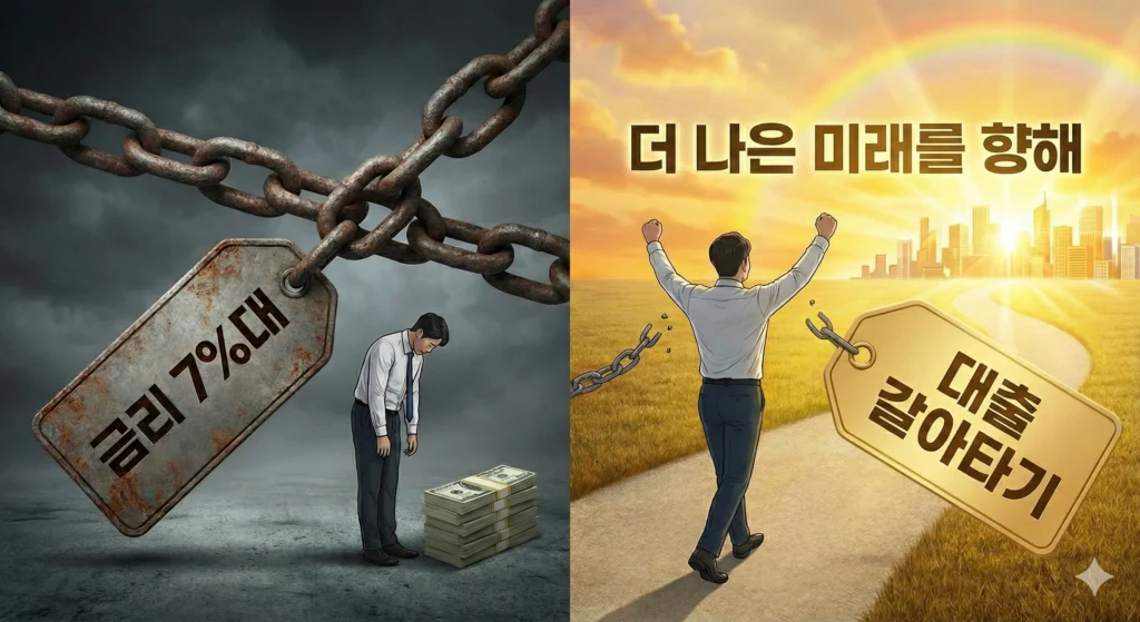 오늘은 7%대 고금리 대출을 3~4%대로 낮출 수 있는 현실적인 갈아타기 전략을 상세히 정리해 드립니다. 이 글을 끝까지 읽으시면 남들보다 연간 수백만 원의 이자를 아끼는 구체적인 로드맵을 얻게 되실 겁니다.