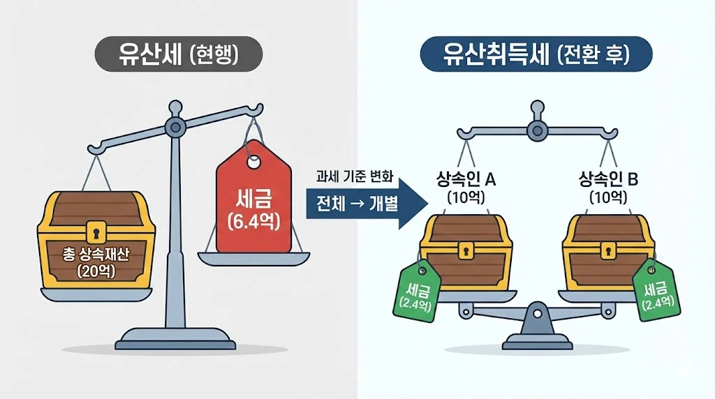 | 구분 | 유산세 (현재) | 유산취득세 (전환 시) |