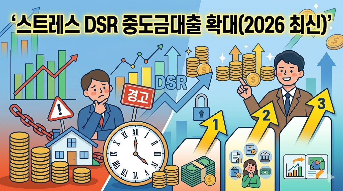 하지만 너무 좌절하지 마십시오. 규제가 복잡해질수록 이를 합법적으로 우회하고 내 자산을 방어하는 '틈새 전략'은 반드시 존재합니다. 오늘 이 글에서는 스트레스 DSR 중도금대출 확대의 정확한 의미와 내 대출 한도가 얼마나 깎이는지 숫자로 확인해 보고, 부족한 자금을 조달하는 현실적인 1금융권 우회 전략 3가지를 완벽하게 분석해 드립니다. 이 글을 끝까지 읽는 것만으로도 수천만 원의 자금 융통 계획을 세우는 데 결정적인 힌트를 얻으실 수 있습니다.