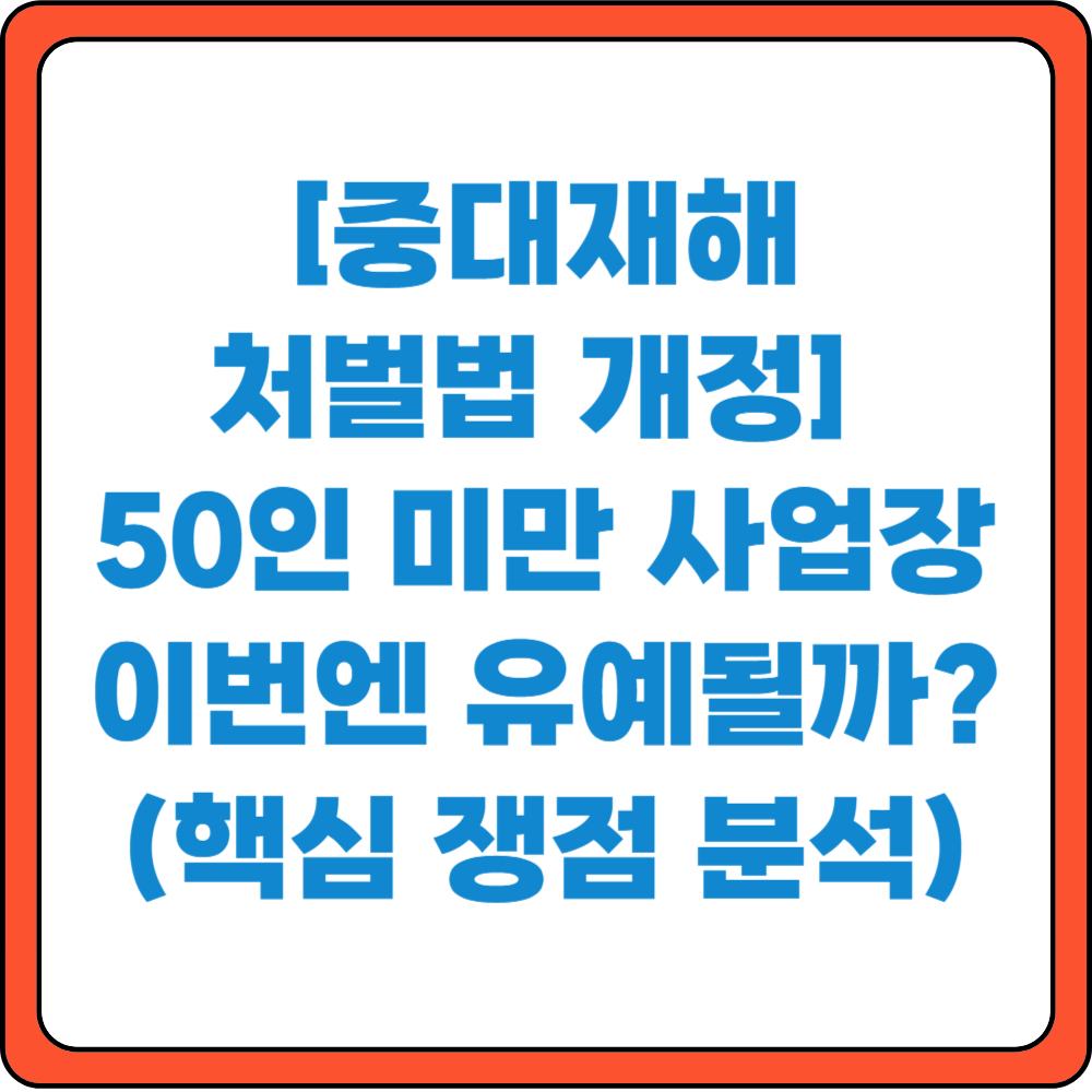 - 경영계의 호소 ("준비할 시간이 더 필요하다"): 50인 미만 영세 사업장은 전문적인 안전관리 인력을 두거나, 값비싼 안전 시스템을 구축할 여력이 턱없이 부족하다는 것입니다. 법에서 요구하는 수백 가지의 의무 사항을 파악하고 이행하는 것조차 현실적으로 불가능에 가깝다고 호소합니다. 이들은 "처벌만능주의"가 아닌, 정부의 실질적인 지원과 충분한 준비 기간이 먼저라고 주장합니다.