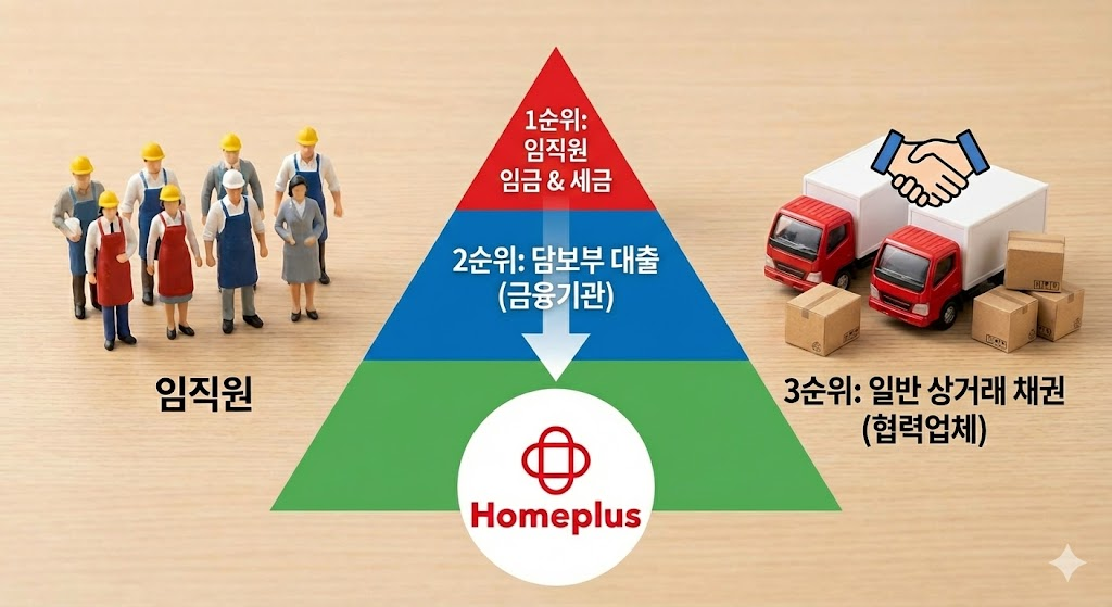 *핵심 포인트: 홈플러스와 같은 거대 기업이 파산할 경우, 수만 명에 달하는 임직원의 임금과 막대한 미납 세금이 파산 자산의 상당 부분을 먼저 가져가게 됩니다