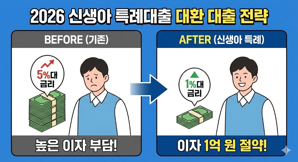 이미 집을 샀거나 높은 금리의 대출을 이용 중인 부모님들께 신생아 특례대출은 '가계 경제의 인공호흡기'와 같습니다. 2026년에는 기존 대출 갈아타기 절차가 더욱 간소화되었습니다.